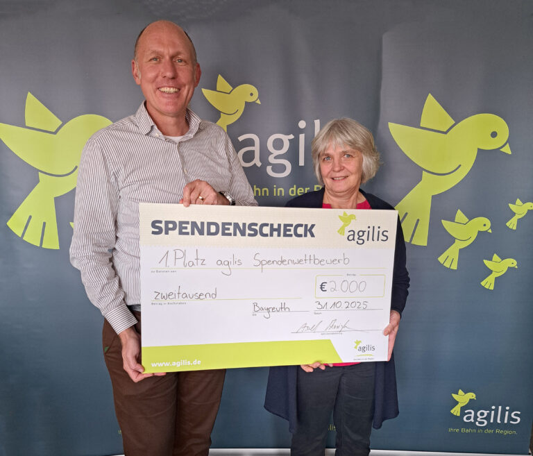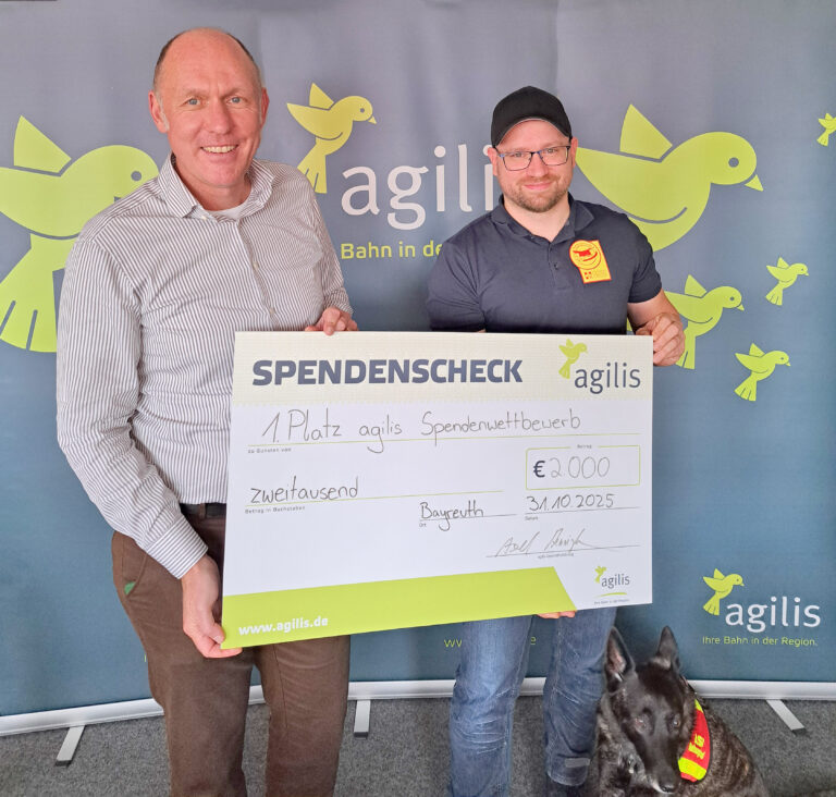 Noch nie zuvor gab es so viele Bewerbungen und gleich zwei Gewinner: Beim Spendenwettbewerb „agilis kommt an“ im Netz Nord erhielten sowohl die Rettungshundestaffel des ASB Coburg als auch das Trauerzentrum „Lacrima“ der Johanniter-Unfallhilfe Oberfranken den ersten Platz. Die feierliche Übergabe der Spenden fand am 31. Oktober in Bayreuth statt.